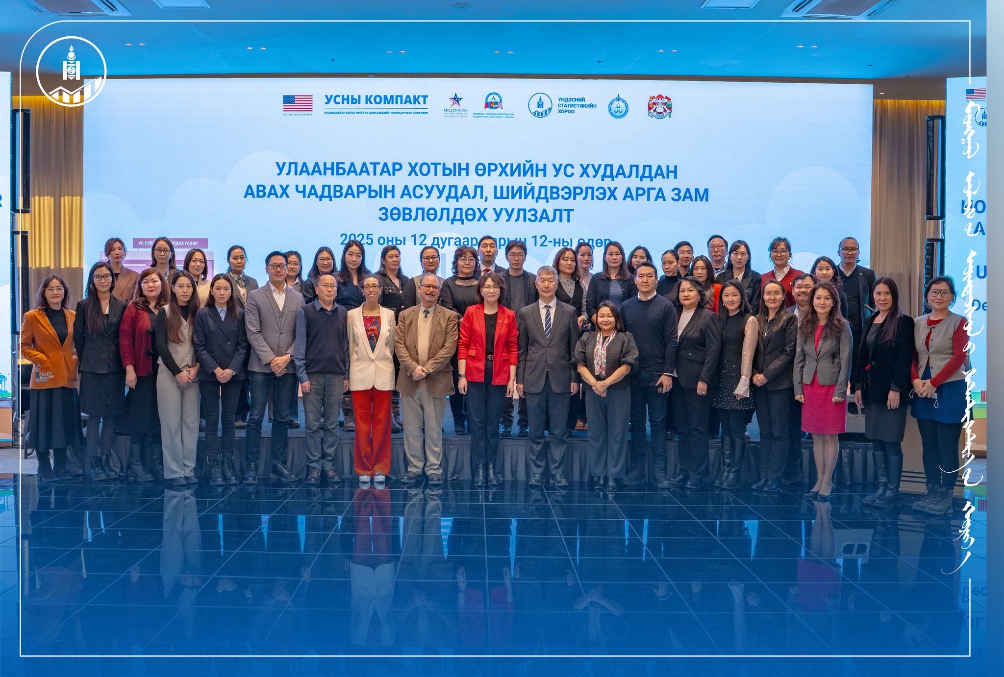 “Улаанбаатар хотын өрхийн ус худалдан авах чадварын асуудал, шийдвэрлэх арга зам зөвлөлдөх уулзалт” боллоо. Энэхүү уулзалтаар Улаанбаатар хотын өрхийн ус худалдан авах чадварын өнөөгийн нөхцөл байдал, тулгамдсан асуудал болон үнэ тарифын нөлөөллийн талаар мэдээлэл танилцуулж, хэлэлцүүлэг өрнүүлэв. Мөн ус худалдан авах чадварыг хэмжих аргачлал, үндэсний болон олон улсын туршлагаа хуваалцаж, бодлогын шийдэл, хамтын ажиллагааны боломжуудын талаар хэлэлцлээ.