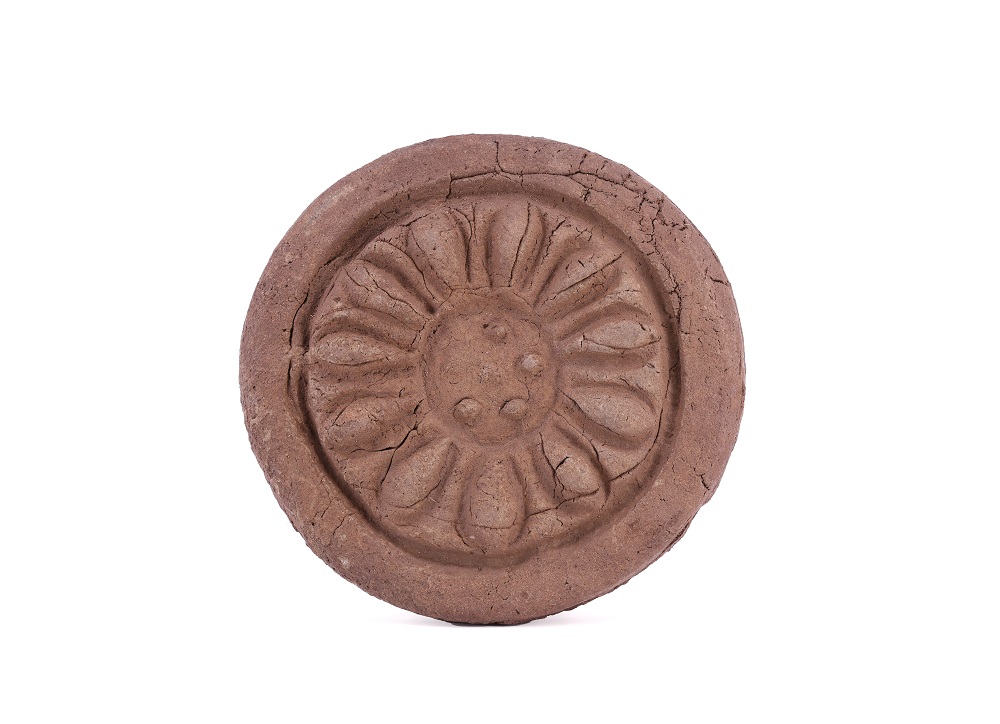 Ингэт толгойн малтлага судалгааны явцад хамгийн олон тоогоор илэрсэн олдвор бол бадам цэцгэн хээтэй дээврийн нүүр ваар юм. Баруун болон зүүн барилгын тууриас илэрсэн бадам цэцгэн хээтэй нүүр вааруудыг хээ чимэглэлийн байдлаар нь харьцуулан үзэхэд хоорондоо ижил буюу бүгд нэг төрлийн нүүр ваарууд байв. Ерөнхий хээ чимэглэлийн бүтцийн хувьд гадна хүрээний дотор талд бадам цэцгийн 11 дэлбээ, тэдгээрийн дунд “Т” хэлбэрийн чимэглэл, голын хонхорцог дотор 7 ширхэг үр дүрсэлсэн.