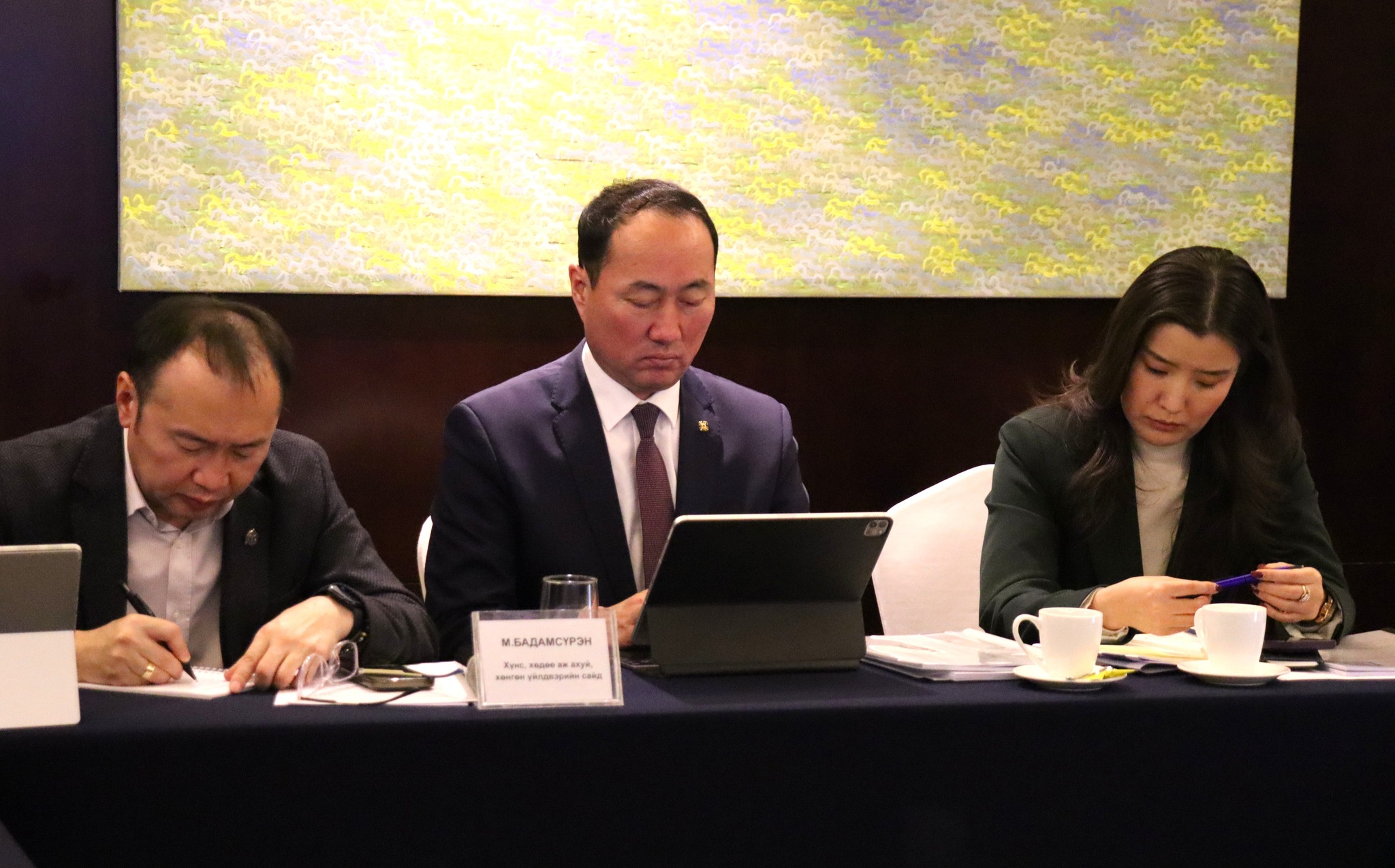 Тус уулзалтад ХХААХҮ-ийн Сайд М.Бадамсүрэн, Монгол Улсын Ерөнхийлөгчийн зөвлөх Б.Жавхлан, Монголын сав баглаа боодол үйлдвэрлэгчдийн нэгдсэн холбоо, Монголын Ноосон Бүтээгдэхүүн Үйлдвэрлэгчдийн Холбоо, Монголын гоо сайхны бүтээгдэхүүний кластер ТББ, Монголын ойчид, модны үйлдвэрлэл эрхлэгчдийн холбоо, Монголын хог хаягдлыг дахин боловсруулах үндэсний холбоо, Монголын арьс ширний үйлдвэрлэлийн холбоо, Монголын хэвлэлийн үйлдвэрүүдийн холбоо; Оёдлын салбарын нэгдсэн мэргэжлийн холбоо, Монголын оёдлын нэгдсэн холбоо, Монголын Ноос, ноолуурын холбооны төлөөллүүд оролцов.