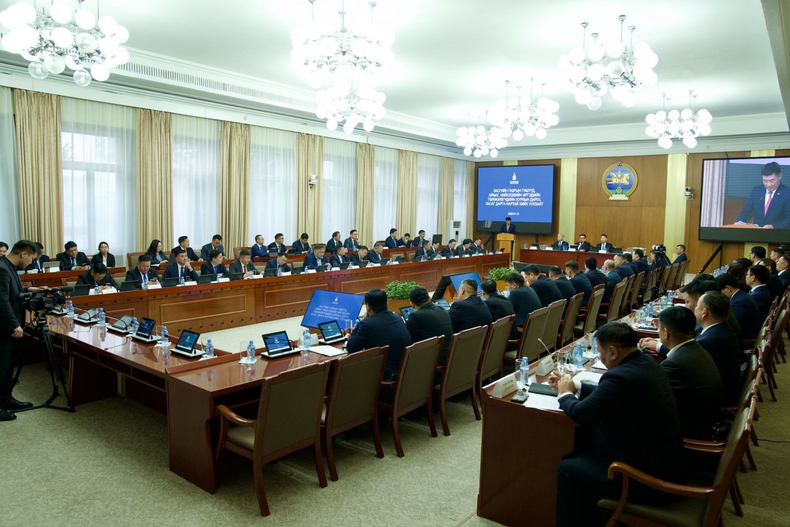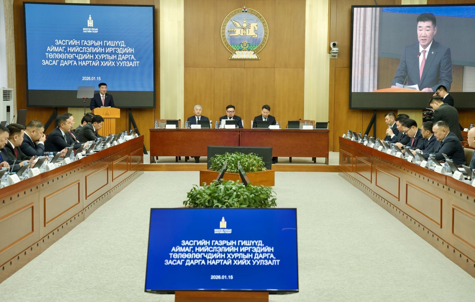 Монгол Улсын Засгийн газрын тэргүүн Ерөнхий сайд Г.Занданшатар, ЗГХЭГ -ын дарга С.Бямбацогт болон Засгийн газрын гишүүд аймаг, нийслэлийн удирдлагуудтай нэгдсэн уулзалт хийлээ.