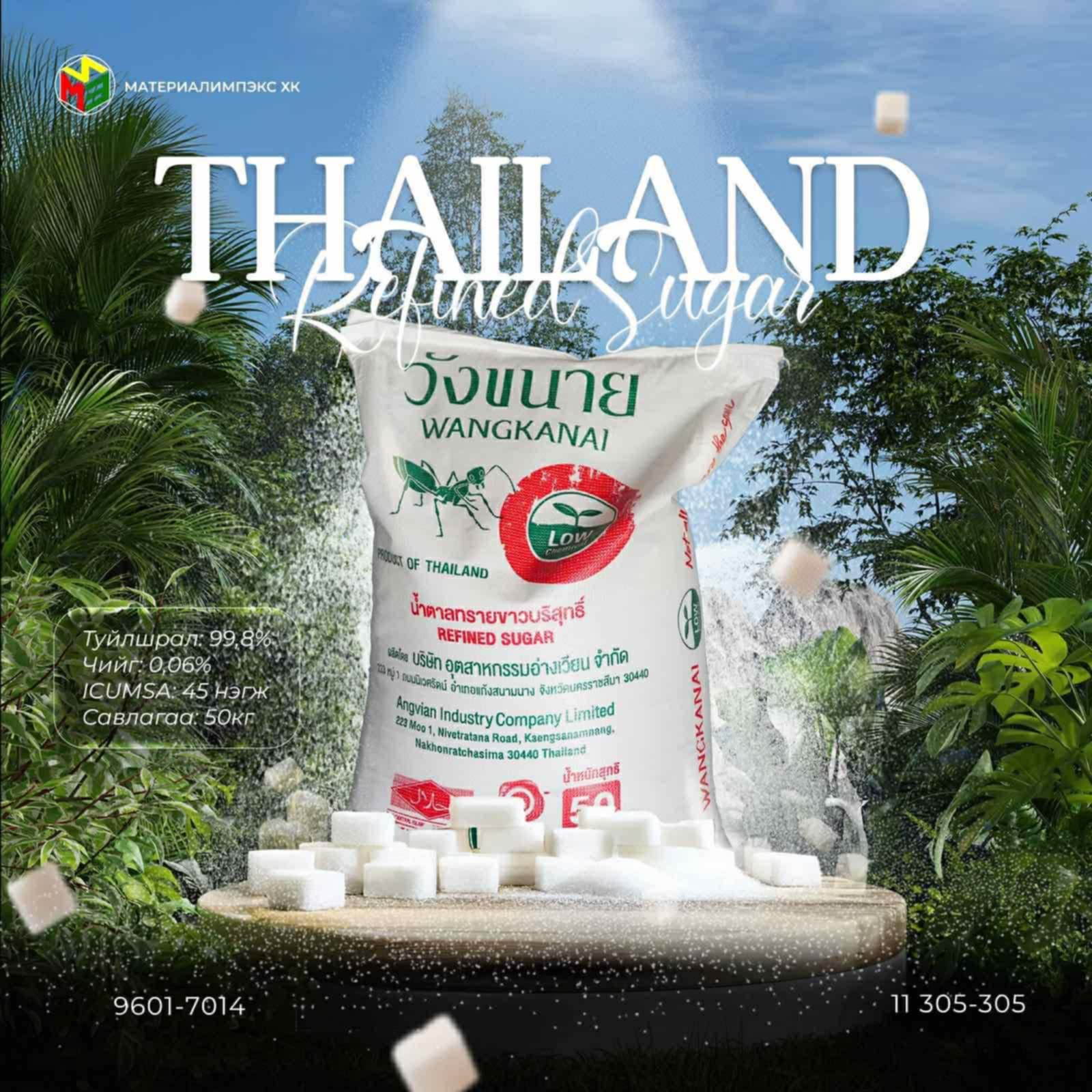 Одоогоор Тайланд улсын дэлхийд нэр хүндтэй Wangkanai болон Mitrphol брэндийн 50кг савлагаатай элсэн чихрийг албан ёсны эрхтэйгээр импортлон хэрэглэгч танд хүргэж байна.