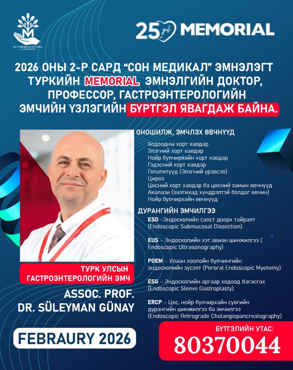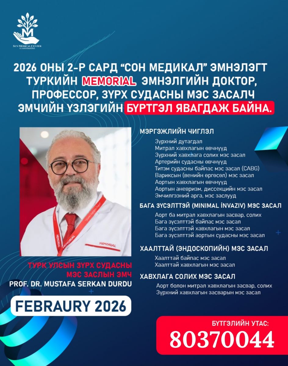 “Сон медикал центр Улаанбаатар” нэгдсэн эмнэлэгт ирэх хоёрдугаар сард гадаад эмч нар үзлэг хийж, зөвлөгөө өгнө.