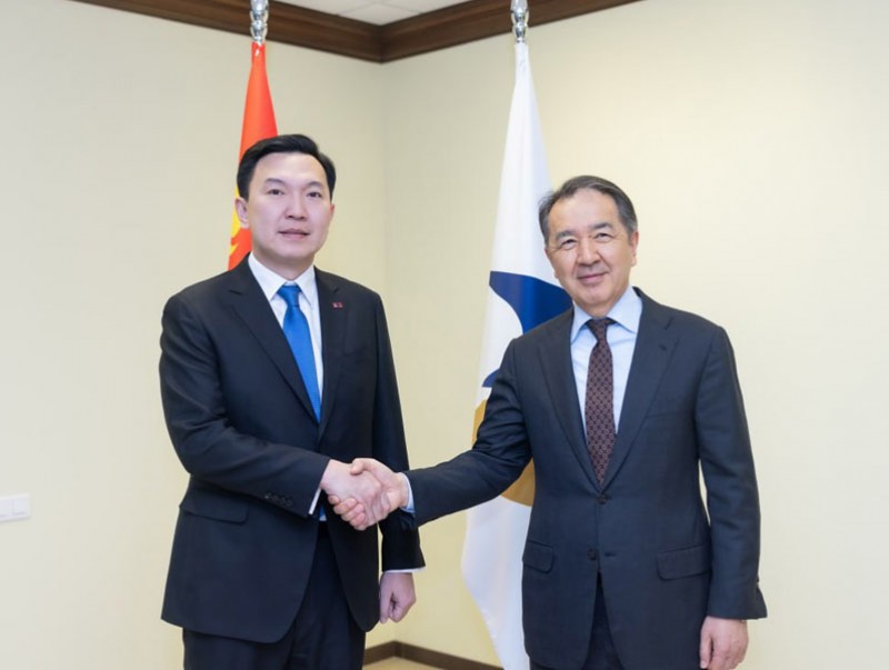 Монгол Улсын Их Хурлын дарга Н.Учрал Оросын Холбооны Улсад хийж буй албан айлчлалынхаа эхний өдөр (2026.02.09) Евразийн эдийн засгийн комиссын Сайд нарын зөвлөлийн дарга Бакытжан Абдирович Сагинтаевтай уулзлаа.