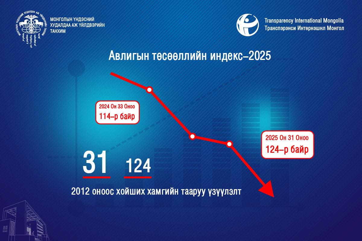 Үүнтэй холбогдуулан энэ удаагийн Авлигын төсөөллийн индексийн 2025 оны үр дүнгийн талаарх албан ёсны, заавал хүргэх мэдээллийг энд сонирхуулъя.