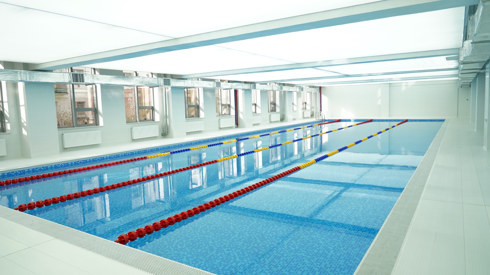 Хоёрдугаар давхрын спорт заал нь олон улсын стандартад нийцсэн шал, гэрэлтүүлэг, тоног төхөөрөмжөөр бүрэн тоноглогдсон. Ингэснээр сурагчид стандартад нийцсэн, тохилог орчинд суралцаж, усан спортоор хичээллэх боломж бүрдэж байна. Мөн усан бассейны усыг зориулалтын шүүлтүүрийн систем болон робот цэвэрлэгч ашиглан тогтмол цэвэрлэж, ариун цэвэр, эрүүл ахуйн шаардлагыг ханган ажиллуулж байгаа онцлогтой. Тус бүтээн байгуулалтыг “Гэрэлтжин” ХХК гүйцэтгэж, нийслэлийн Хөрөнгө оруулалтын газар захиалагчийн техник хяналтыг хэрэгжүүлэн ажиллалаа.