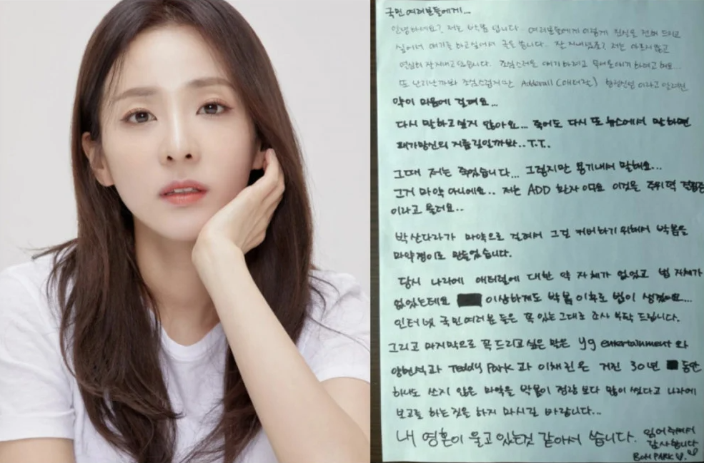 Пак Бомын хувьд өчигдөр буюу гуравдугаар сарын 3-ны өдөр өөрийн инстаграм хуудсаар дамжуулан нэгэн гар бичвэрийг нийтэлсэн. Уг бичвэрт тэрээр 2010 онд болсон үйл явдлын талаар дурдсан байх бөгөөд тэрээр сэтгэцэд нөлөөт Аддералл хэмээх эмийг АНУ-аас гаалийн мэдүүлэггүйгээр импортлосон хэргээр шалгагдаж байсан. Харин энэхүү дуулианыг Сандара Пакыг хар тамхи хэтрүүлэн хэрэглэсэн гэх хэргийг нуун дарагдуулахын тулд гаргасан хэрэг хэмээн Пак Бом үзэж буйгаа илэрхийлсэн байна.