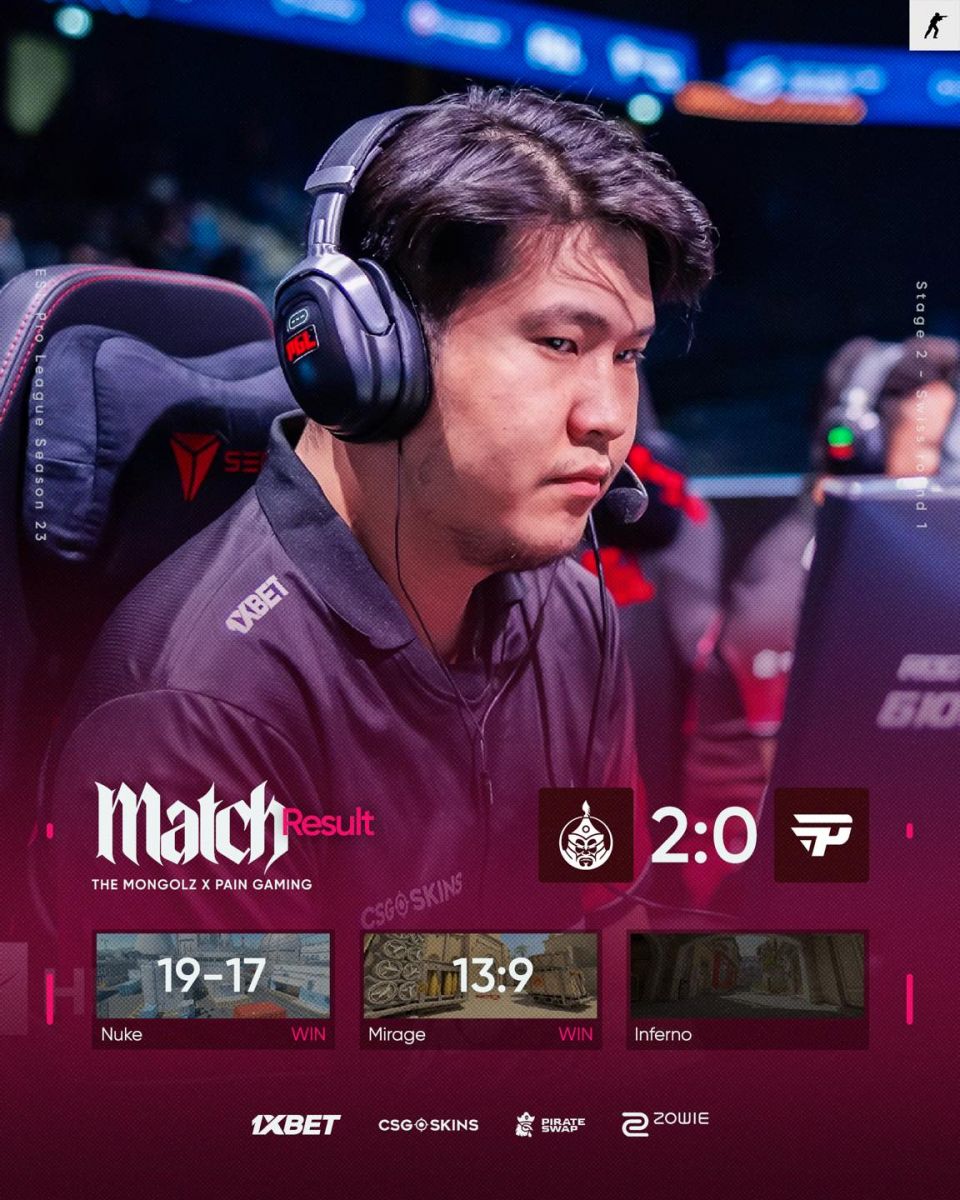 The MongolZ баг ESL Pro League Season 23 тэмцээний эхний тоглолтод Бразилийн paIN Gaming багийг 2:0 харьцаатайгаар хожиж, тэмцээнийг 1–0 гэсэн үзүүлэлттэйгээр үргэлжлүүлэхээр боллоо.