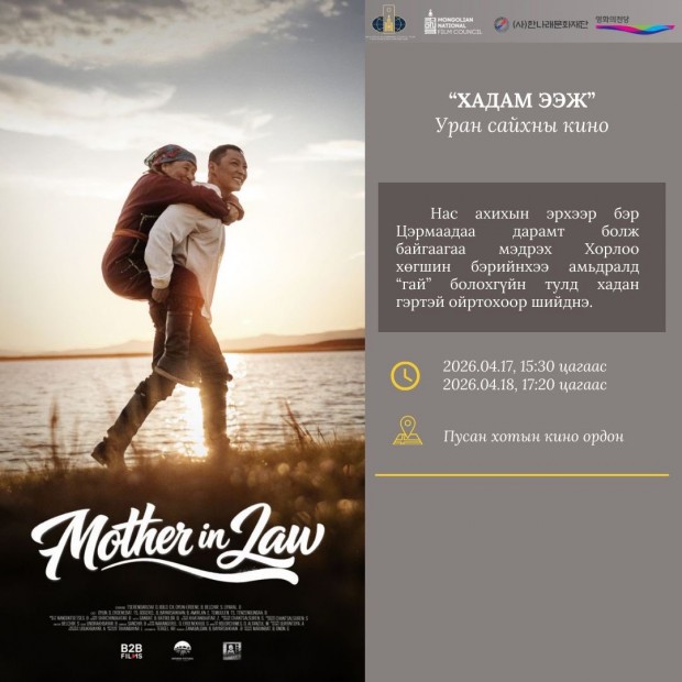 Монгол Улсаас БНСУ-ын Пусан хотод суугаа Консулын газар байгуулагдсаны 10 жилийн ой, Монголын соёл, урлагийг сурталчлах ажлын хүрээнд Монгол Улсаас БНСУ-ын Пусан хотод суугаа Консулын газар, БНСУ-ын Ханнарэ сан, Пусаны кино ордон, Монголын Кино Зөвлөлтэй хамтран “Монголын Кино Өдрүүд -2026” кино фестивалийг гурав дахь жилдээ зохион байгуулах гэж байна. Энэ удаагийн кино фестиваль 2026 оны дөрөвдүгээр сарын 16-18 өдрүүдэд Пусан хотын кино ордонд болно.
