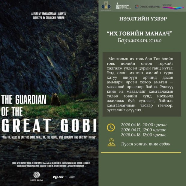 04-р сарын 16-ны 20:00 цагт “Их говийн манаач”