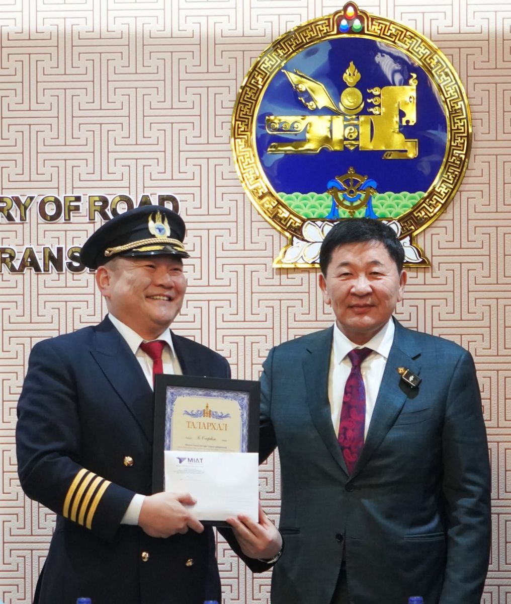 ”МИАТ” компанийн 23 хүний бүрэлдэхүүнтэй тусгай нислэгийн багийнханд Зам, тээврийн сайд Б.Дэлгэрсайхан хүндэтгэл үзүүлж, талархал илэрхийллээ.