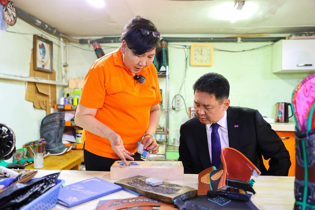 Монгол Улсын Ерөнхийлөгч У.Хүрэлсүх дараа нь биет бус соёлын өвийг тээгч, хувиараа монгол гутал үйлдвэрлэдэг А.Чимгээтэй уулзлаа.