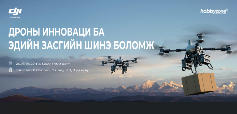 Монголын зах зээлд 2013 онд нисгэгчгүй нисэх төхөөрөмж буюу дроны технологийг анхлан нэвтрүүлж байсан Хоббизоон ХХК нь Цахим хөгжил, инновац, харилцаа холбооны яамтай хамтран “Дроны инновац ба эдийн засгийн шинэ боломж” сэдэвт арга хэмжээг зохион байгуулах гэж байна. Тус арга хэмжээ 2026 оны 3 дугаар сарын 27-ны өдөр 13:00–17:00 цагийн хооронд Juulchin Ballroom-ийн Grand танхимд болно.