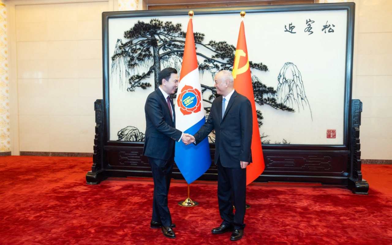 Монгол Ардын намын дарга, УИХ-ын дарга Н.Учрал тэргүүтэй төлөөлөгчид ХКН-ын урилгаар БНХАУ-д хийж буй айлчлалын хүрээнд өнөөдөр /2026.03.24/ ХКН-ын Төв хорооны Улс төрийн товчооны Байнгын хорооны гишүүн, Төв хорооны нарийн бичгийн дарга нарын газрын нарийн бичгийн дарга Цай Чи-тай Хятадын Ардын Их Хурлын ордонд уулзав.