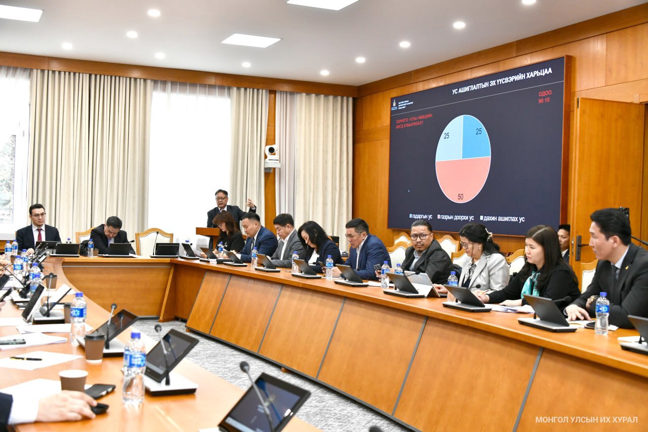 Улсын Их Хурлын даргын 2026 оны 20 дугаар захирамжаар байгуулагдсан Усны нөөцийг хамгаалах, зохистой ашиглах эрх зүйн зохицуулалтыг боловсронгуй болгох чиглэлээр холбогдох хууль тогтоомжийн төсөл боловсруулах үүрэг бүхий ажлын хэсэг “Усны нөөцийг хамгаалах, зохистой ашиглах эрх зүйн зохицуулалтын өнөөгийн байдал, шийдэл” сэдвийн хүрээнд хэлэлцүүлэг зохион байгууллаа.