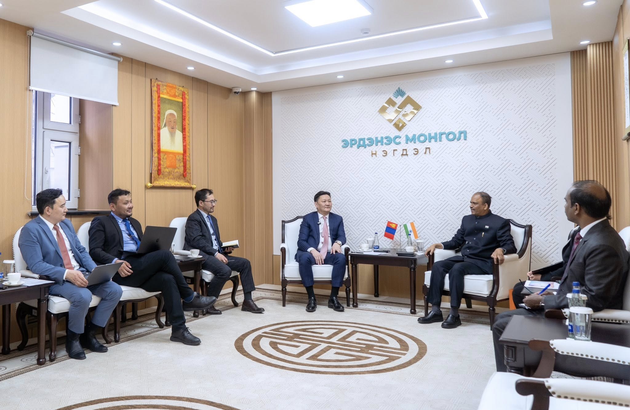 ”Эрдэнэс Монгол” нэгдлийн гүйцэтгэх захирал Б.Даваадалай БНЭУ-аас Монгол Улсад суугаа Онц бөгөөд бүрэн эрхт Элчин сайд Атул Малхари Готсурве тэргүүтэй төлөөлөгчдийг хүлээн авч уулзлаа.