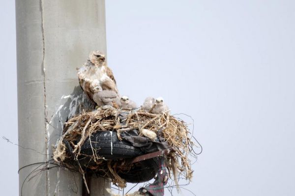 Өндөр хүчдэлийн шонд машины дугуй, төмөр утас, даавуугаар үүрээ зассан шувуу. Тэр хэрхэн энэ машины дугуйг 8-9 метрийн өндөрт байгаа үүрэндээ гаргав... 2010.06 сар. Төв аймаг. Баянжаргалан сум.