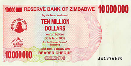 1. 10 сая Зибабевийн доллар= 4 ам.доллар
