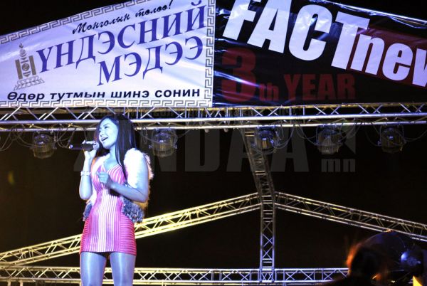 Өчигдөр буюу 9-р сарын 21-ний үдэш Сүхбаатарын талбай дээр “Үндэсний мэдээ” өдөр тутмын шинэ сонины нээлт, Монголын анхны чөлөөт мэдээллийн Factnews.mn сайтын гурван жилийн ойн баярын шоу болж төв талбай доргио залуусын хөлд чичирхийлж байлаа. Энэ шоунд амьд хөгжмийн “Fire” хамтлаг, “Сүнс”, “Ice Top” "Нюанс" ,"Мотив", “Flash” хамтлагийн Бэбэ, “Хар тас”, “Sync” “Нэгэн зүгт”, бүжгийн “B&B”, “ONYX” хамтлагууд, дуучин Нара, Ану, альтернатив дуучин Отгоо болон охидын шүтээн болоод байгаа Outlaw, “Crush bash” зэрэг хамтлагууд ирж ая дуугаа өргөсөн юм. Хайртай хамтлаг дуучидтайгаа нэгэн үдшийг өнгөрөөж байгаадаа баярласан залуусын уухайн дуу, агаарын салют зэрэг нь маш том баяр болж байгааг өөрийн эрхгүй илтгэж байв. Яг энэ үед дуучин Ану болон түүний дүү Номинхолбоо нартай ярилцлаа.
