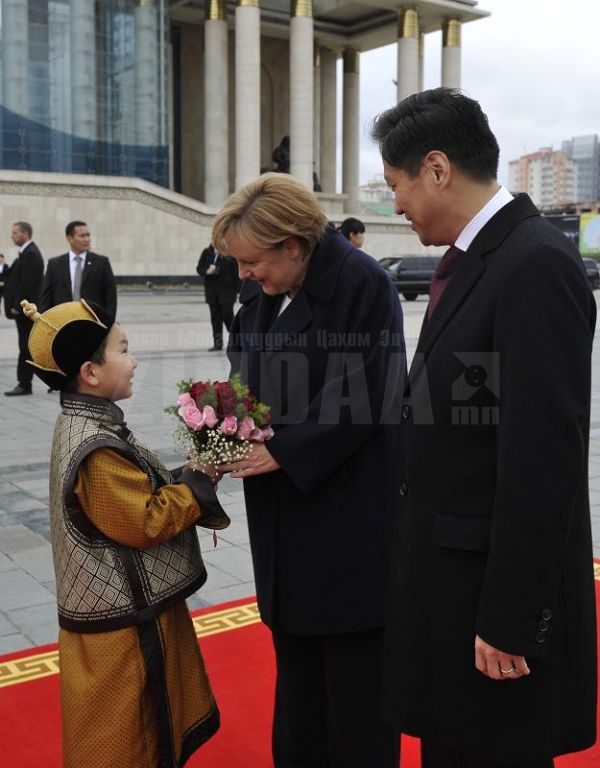Монгол улсын Ерөнхий сайд С.Батболдын урилгаар манай улсад албан ёсны айлчлал хийхээр ХБНГУ-ын Канцлер Ангела Меркел өчигдөр орой хүрэлцэн ирлээ. ХБНГУ-ын Канцлер Ангела Меркел анх удаа Монгол улсад айлчилж байгаа бөгөөд түүний энэ айлчлал нь Монгол-Германы уламжлалт, найрсаг харилцааны тод илэрэл юм.