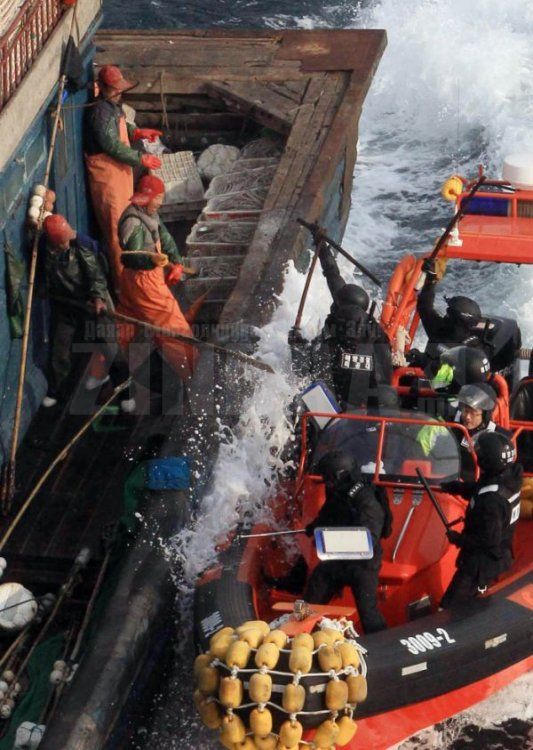 Хятадууд байнга л Шар тэнгисээс загасчилдаг. Энэ нь Өмнөд Солонгосын эрэг хавийн газар нутаг аж. Ингээд эргийн хамгаалалт болон хууль бус загасчдын хооронд ийм мөргөлдөөн, хөөцөлдөөн болно доо. Харин загасчдын бие биендээ туслаж зугатах аргыг та зургаас харна уу.
