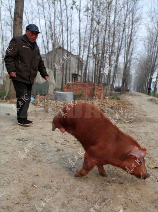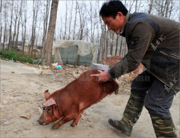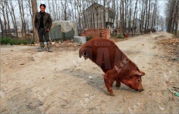 Хятадад саяхан хойд 2 хөлгүй гахай төрсөн байна. Төрөлхийн гажигтай төрсөн энэхүү торойг эзнийх нь эхнэр хороох гэсэн ч фермер эсэргүүцсэн байна. Улмаар фермер эр "хөлгүй" ч гэсэн хэрхэн амьдарч болохыг гахайд сургажээ.