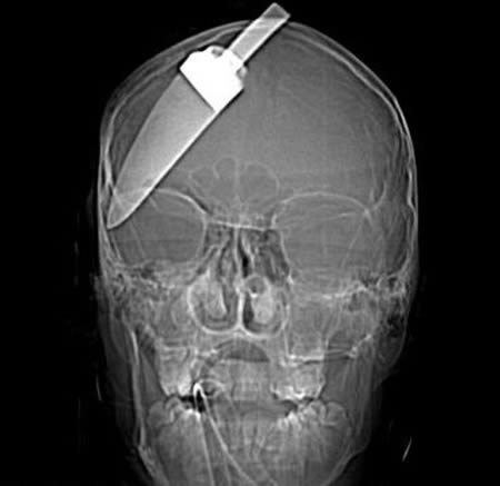 Таны харж байгаа энэ зураг бол 15 настай нэгэн хүүгийн тархины рентген зураг. Хүүг хоёр найзтайгаа байхад нь дээрмийн хэрэг гарсан бөгөөд хүү энэ хэргийг таслан зогсоох гэж байгаад хутгалуулсан байна. Гэсэн ч хүү 10 сарын дараа бүрэн эдгээд зогсохгүй жинхэнэ гавал залуу болжээ. Хэрвээ хүүгийн хутгыг авах гэж оролдсон бол газар дээрээ нас барах байсан бөгөөд хутгыг хөндөөгүй нь сайн хэрэг хэмээн эмч нар тайлбарлаж байна.