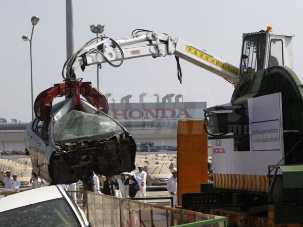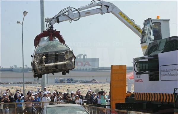 Тайландад болсон аймшигт үерийн улмаас Хонда их хэмжээний хохирол амссан талаар бид өмнө нь мэдээлсэн. Хонда үерт автсан 1055 шинэ машиныг устгалд оруулж эхлээд байна. Устгалд оруулахаас өмнө машин тус бүрийн дугуйг салгаж дахин хэрэглэхээр болсон гэнэ.