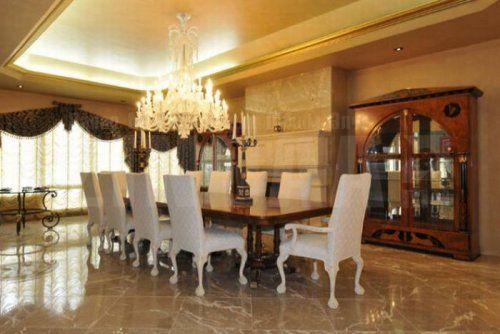 Байшингийн талбай 4 500 квадрат метр. 21 унтлагын өрөө, 25 угаалгын өрөө, гал тогоо, зочны өрөө, бильярд, дуу бичлэгийн студи, жакузи, бэлтгэлийн том заал, фитнес төв, усан сан, гэрийн кино театр, шөнийн клуб, баар, найман машины гараж, нисдэг тэрэг буух талбай гээд бүгд энд бий. Нийт газрын хэмжээ 6,9 гектар.