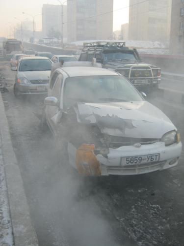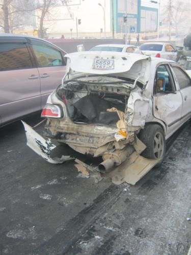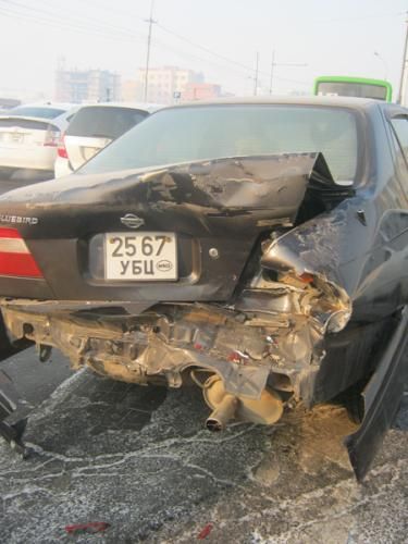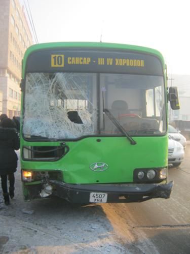 Сансрын тунелээс доош МУИС руу уруудах замд өнөө өглөө 9 цагийн үед “Сансар-III, IV хороолол” чиглэлийн 10 номерын том оврын автобус осол гаргасны улмаас есөн суудлын автомашин мөргөлджээ. Ослын улмаас хөнгөн гэмтэл авсан таван хүнийг эмнэлэгт хүргэсэн бөгөөд автобусны урд талын шил хагарсан байна. Автобусны жолооч хорь гаруй насны залуугийн хэлж байгаагаар, тэрээр 20 гаруй километрын хурдтай явж байсан гэнэ. Харин гэрч бусад машины жолоочид “Автобус дор хаяж 80 километрийн хурдтай ирж мөргөсөн” хэмээж байв. Одоогоор хүнд гэмтсэн хүн байхгүй байна.