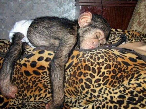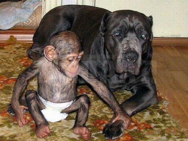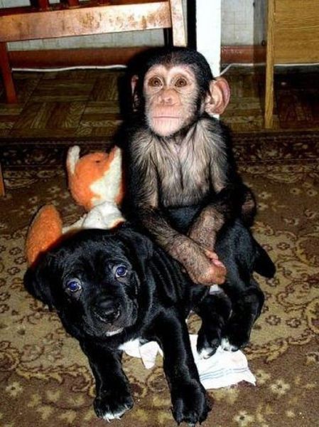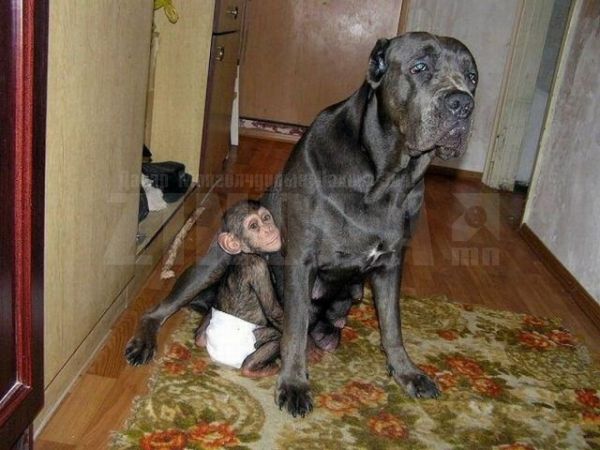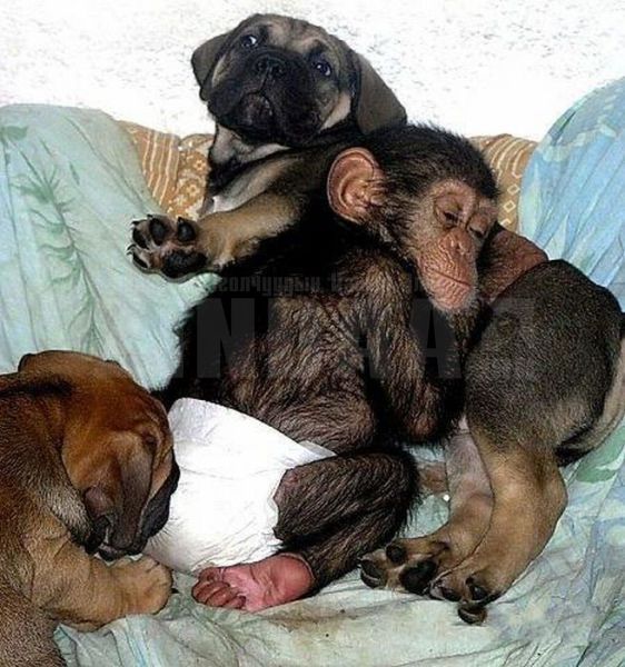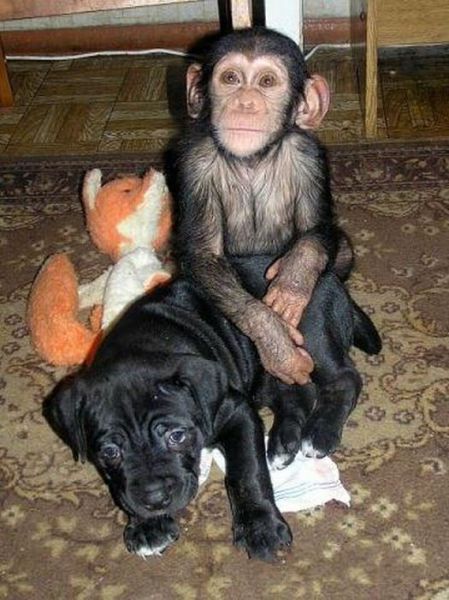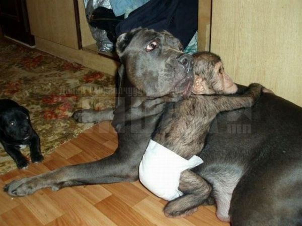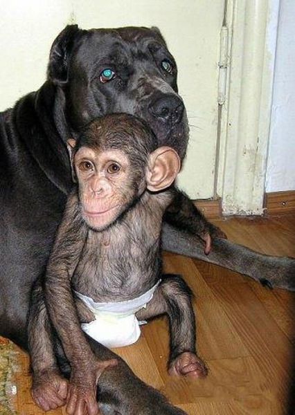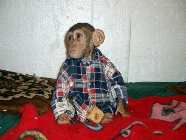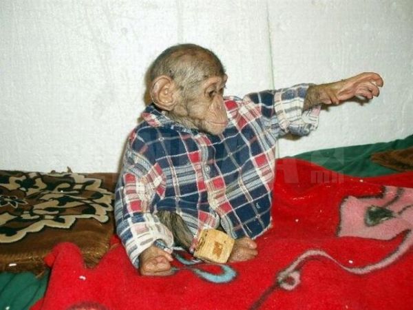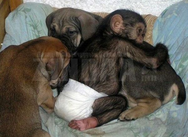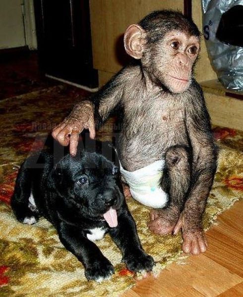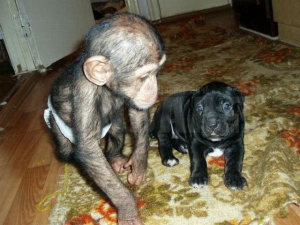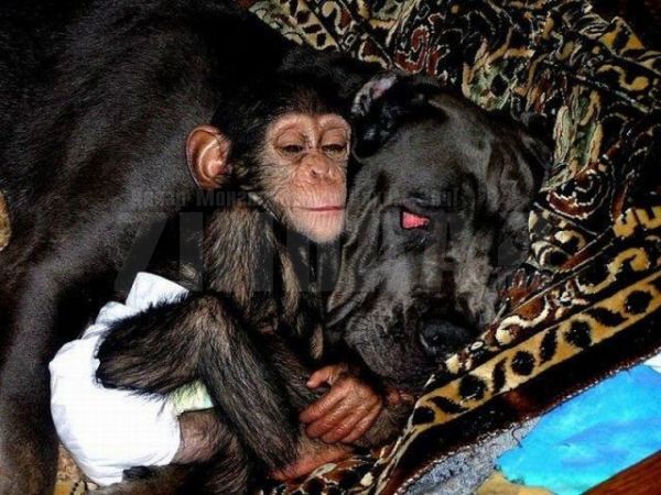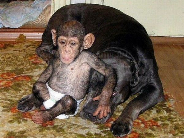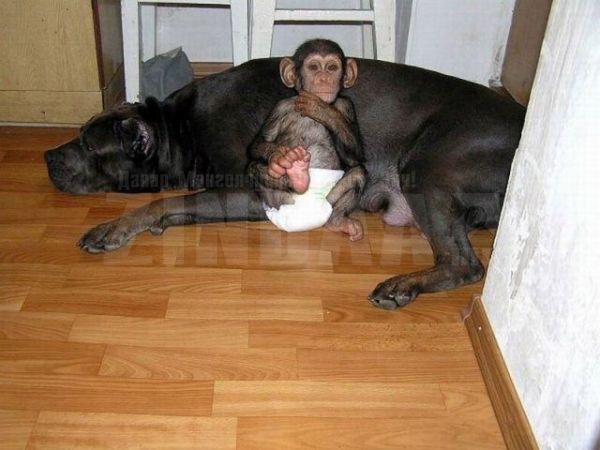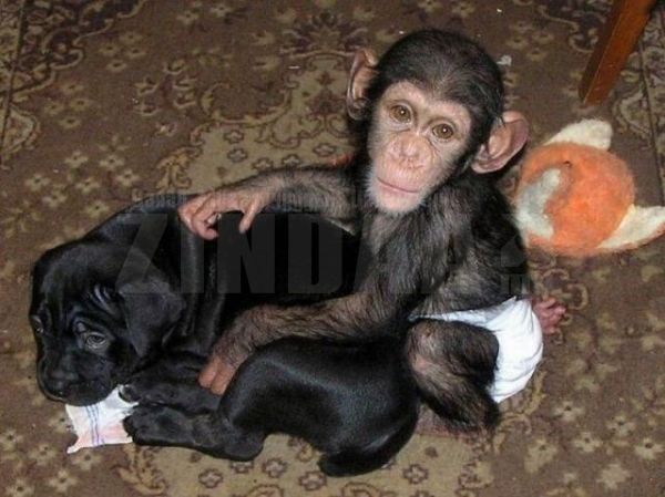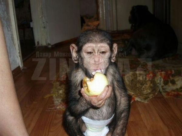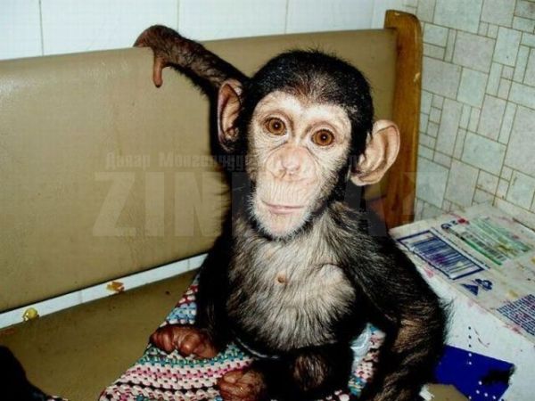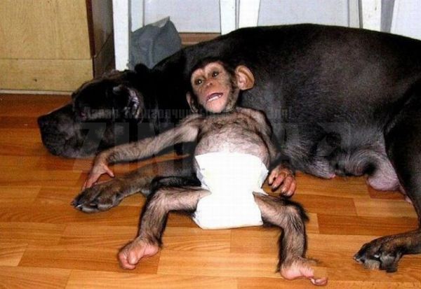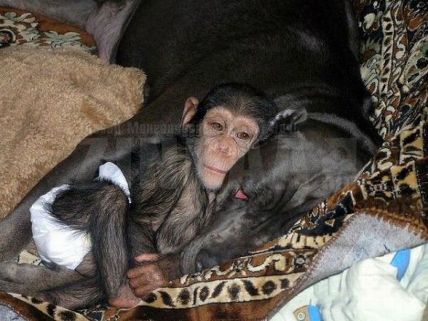 Оросын амьтны хүрээлэнд төрсөн шампанзен монш эхдээ гологдсон байна. Гэсэн ч өхөөрдөм энэхүү эмэгтэй монш шинэ гэр бүлтэй болжээ. Нохой ээж, гөлөг ах эгчдээ монш дассан бөгөөд тун эв найрамдалтай байдаг гэнэ.