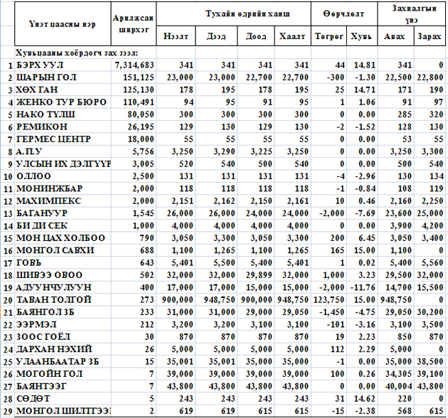 ""Бэрх уул"" ХК-ийн үнэт цаас 7,314,683 ширхэг арилжигдсан нь хамгийн идэвхтэй арилжигдсан үнэт цаас боллоо.