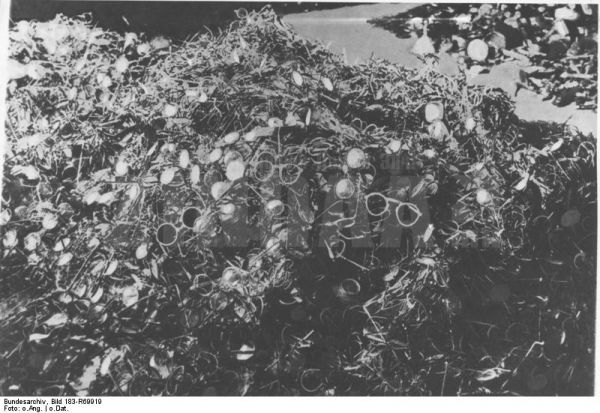 44. 1945.01.27-нд орос цэргүүд Освенцимийг чөлөөлөх үедээ 7,5 мянган хоригдолыг суллаж, барак-складаас 1 185 345 эрэгтэй, эмэгтэй хүний хувцас, 43 255 ширхэг эрэгтэй, эмэгтэй хос гутал, хэдэн зуун мянган шүдний сойз, сахлын хутга зэргий олжээ.