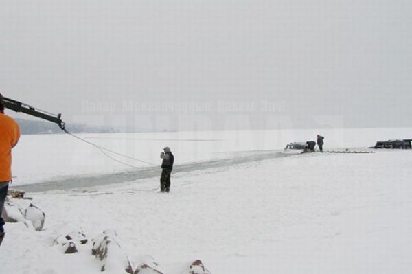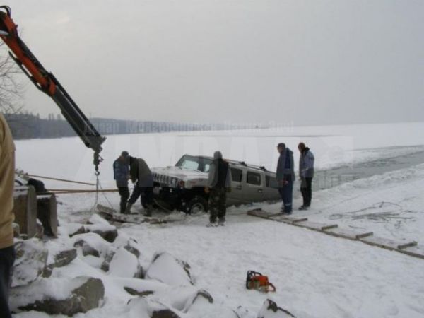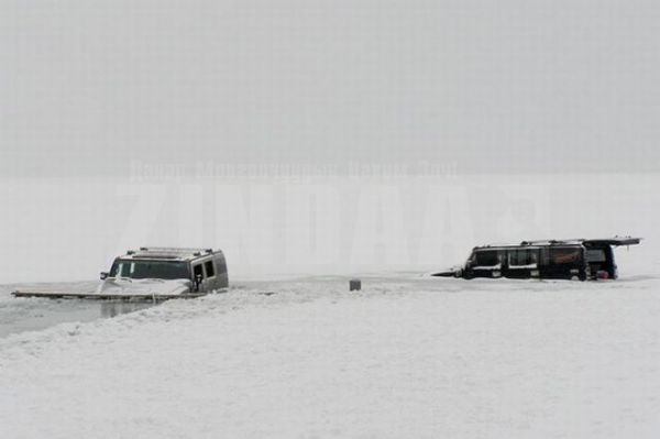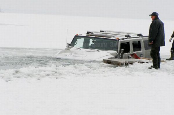Унгарт Хаммер машинтай хоёр эр замаа товчлохоор хөлдсөн голын дээгүүр гарчээ. Харамсалтай нь гол гүйцэд хөлдөөгүй байсан бөгөөд гол гатлах аялал ердөө л 30 үргэлжилсэн байна.