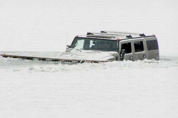 “Явган хүн гарахад ингэж цөмөрдөггүй. Гурван тонн жинтэй Хаммер явахад цөмрөлгүй яахав дээ” хэмээн нутгийн оршин суугчид хэлж байлаа. Юутай ч живсэн Хаммерийг уснаас гаргасан бөгөөд дэлгэрэнгүйг доорхи зургаас үзнэ үү.