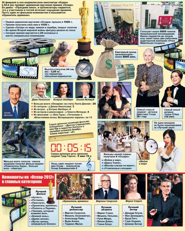Энэ сарын 26-ны үдэш Америкийн кино академи энэ оны шилдэгүүдээ тодруулах гэж байна. Дэлхийн хамгийн том кино наадам 84-дэхь жилдээ зохион байгуулагдана. Ёслолын ажиллагааг Билли КРИСТАЛЛ хөтлөн явуулна. Ингээд та бүхэн доорх зургаас “Оскар”-ын амжилтын эзэдтэй танилцана уу...