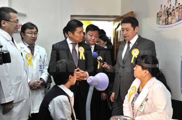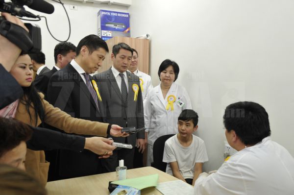 Ерөнхий сайд эхлээд нүдний эмчийн өрөөгөөр орлоо. Өглөөнөөс хойш 60-аад хүүхэд үзлэгт хамрагдсанаас 10 гаруй нь харааны доголдолтой, нүдний шил зүүх шаардлагатай. Гэсэн ч эдгээр хүүхэд ийм үзлэгт орж хараагаа нягтлуулж байгаагүйгээс бүгд шил зүүдэггүй, хараа муутай гэдгээ ч мэдэхгүй байна гэж эмч хэллээ.