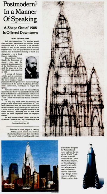 Архитектор Антони Гауди Манхеттенд баргдах байсан гэх уг барилгын загварыг гаргасан. Єндєр нь 360 м.