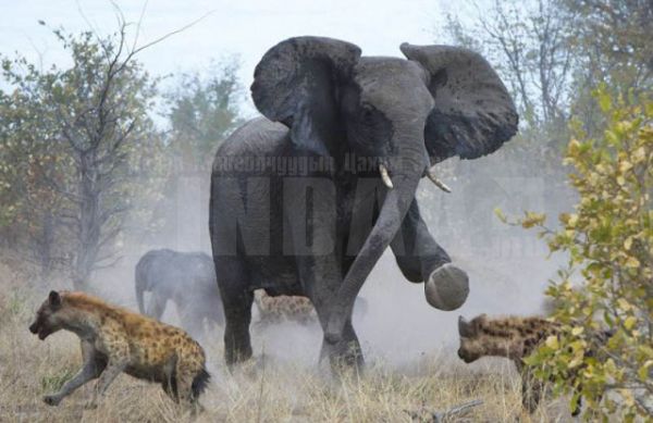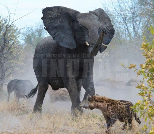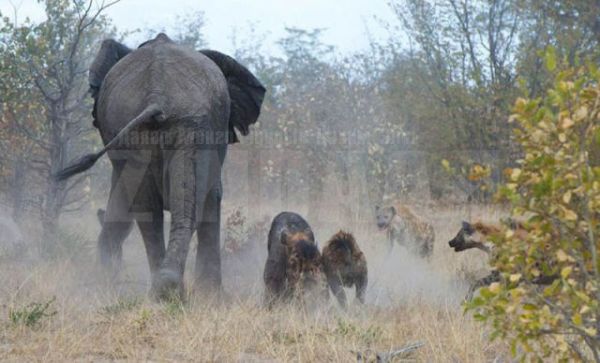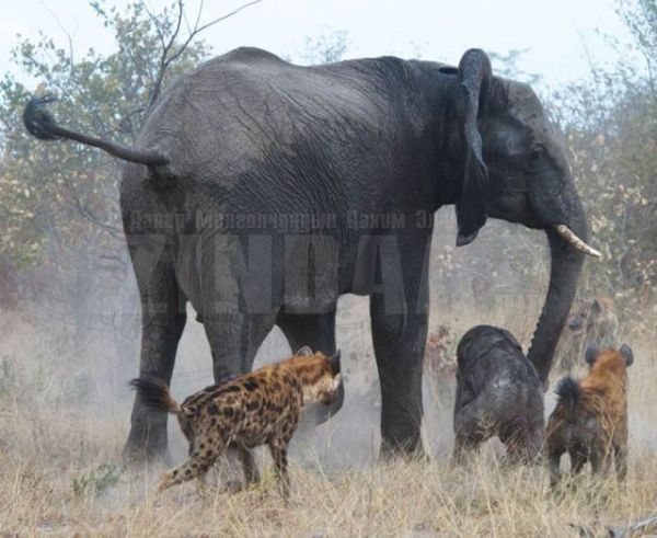 Зааны тугалыг бэлчиж байхад нь цөөвөр чононууд "шоглох"-ыг завджээ. Үүнийг харсан эх заан цөөвөр чонон сүрэгтнй тулалдсан байна. Харин хэн нь ялсныг зургаас үзээрэй.