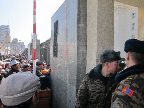 МУ-ын гурав дахь Ерөнхийлөгч Н.Энхбаярыг өнөө өглөө АТГ сэжигтнээр татан баривчилсан нь олон хүний эгдүүцлийг хүргээд байна. Намын даргаа суллуулахаар МАХН-ынхны зохион байгуулсан эсэргүүцлийн жагсаалд хүмүүс 12 цагаас ирж эхэлсэн бөгөөд 14:30 минутад цугласан олны тоо эрс нэмэгдэж Төрийн ордонг гороолох хэмжээнд хүрсэн байлаа. Төв замын хөдөлгөөнийг хааж, Төрийн ордоноо гороолсон жагсагчид "Н.Энхбаярыг сулла, эх орныхоо төлөө тэмцэж яваа хүү, Элбэгдорж, Нямдорж нар гарч ирж иргэдтэй уулз "хэмээн орилж байсан бөгөөд ингэхдээ ордоны зүүн талын машины хаалгыг түлхэн тусгай хамгаалалтынхантай “хүч үзэж ” байлаа. Үүнийг төрийн тусгай хамгаалалтынхан болон хэн болох нь тодорхойгүй зарим хүн баримтжуулсан юм. Үүнийг эс тооцвол байдал харьцангуй тайван байсан бөгөөд жагсагчдын дунд зарим нэг согтуу хүмүүс “яс хаях” зорилго агуулан сүйтгэх ажиллагаанд уриалж байв. Ингээд Төрийн ордоны гадаа болж буй үйл явдлыг тайлбаргүйгээр хүргэе.