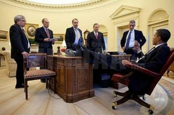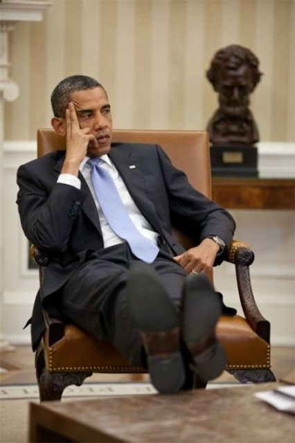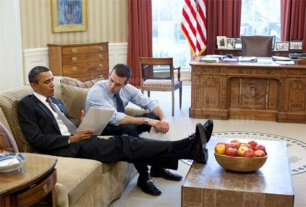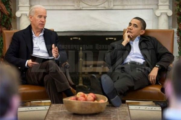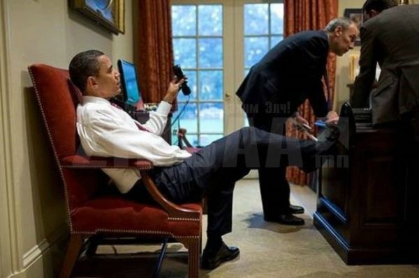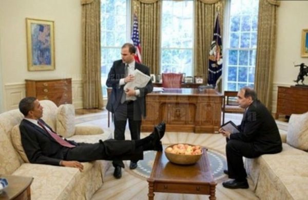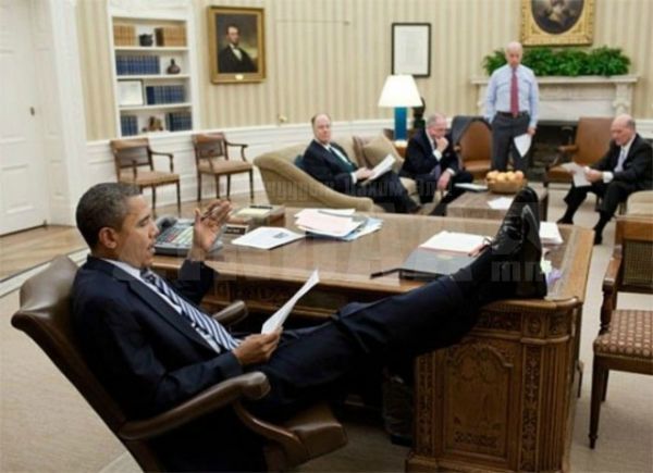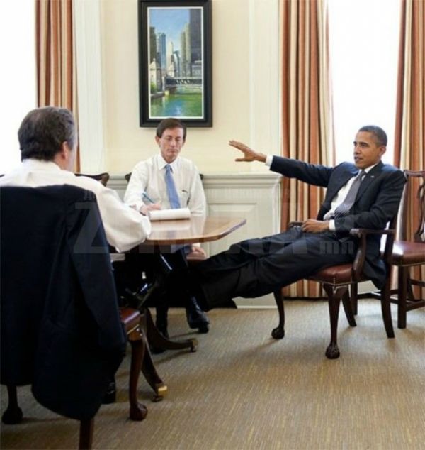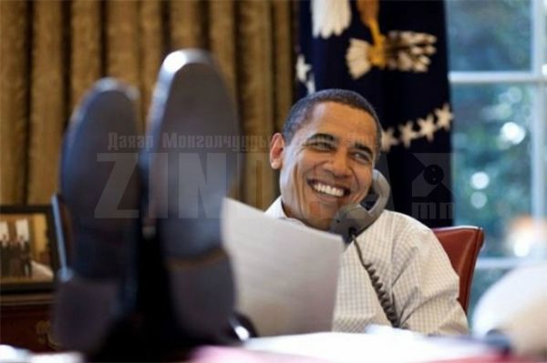 АНУ-ын Ерөнхийлөгч Барак Обама. Тэрээр ширээ, сандал дээр хөлөө тавьж суух дуртай бололтой.