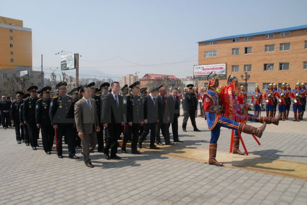 Их ялалтын түүхт 67 жилийн ойн баярт зориулсан энэхүү ёслолд УИХ-ын гишүүн, Засгийн газрын гишүүн, Батлан хамгаалахын сайд Ж.Энхбаяр, ОХУ-аас Монгол Улсад суугаа Элчин сайд В.В. Самойленко, Казахстан улсаас Монгол Улсад суугаа Элчин сайд О.К. Нурбаев, Батлан хамгаалахын дэд сайд С.Баасанхүү, ГХЯ-ны Төрийн нарийн бичгийн дарга Б.Батхишиг, УБТЗ-ын дарга Т.Очирхүү, БХЯ-ны Төрийн нарийн бичгийн дарга, дэслэгч генерал Ц.Тогоо, ЗХЖШ-ын дэд дарга, хошууч генерал Б.Баярмагнай, ОХУ, АНУ-ын цэргийн атташе нар, БХЯ, ЗХЖШ, ХХЕГ-ын удирдах тушаалын генерал, офицерууд оролцов.