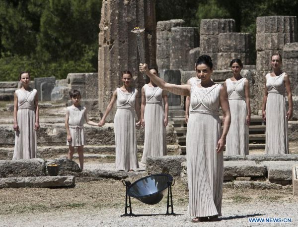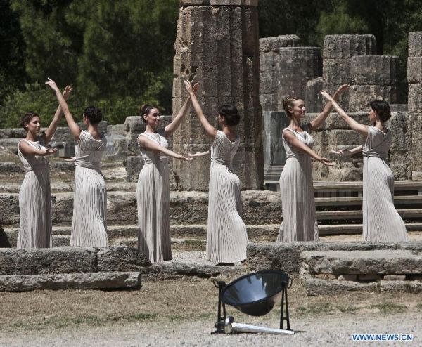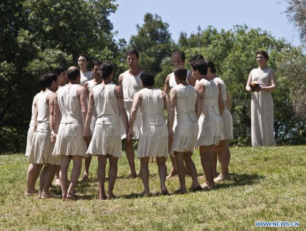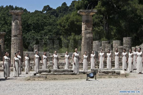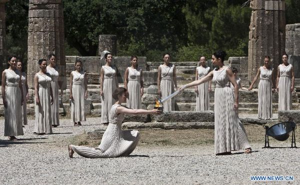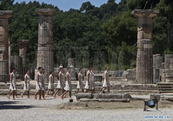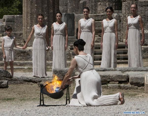 Өнгөрсөн 5-р сарын 9-ний өдөр Олимпийн бамбарыг асаах сургуулилтыг Грекийн урьд нь олимп болж байсан газар тус улсын жүжигчин Ино Менегаки амжилттай гүйцэтгэжээ. Ёслолын бамбар нарны гэрлээр нэг секундэд асчээ.