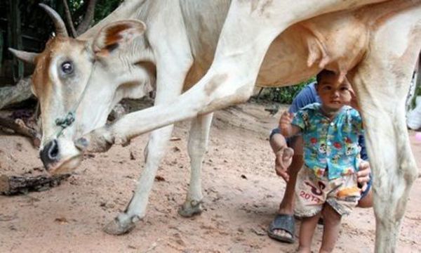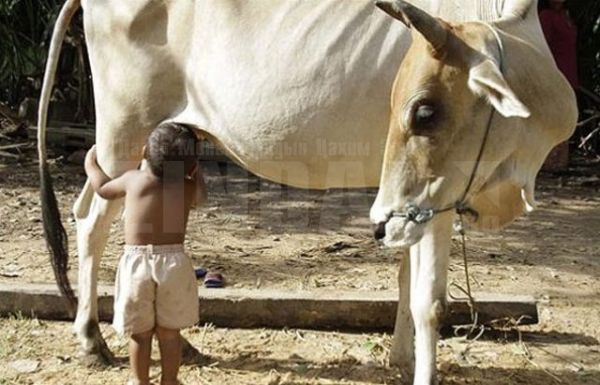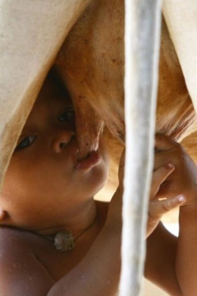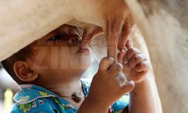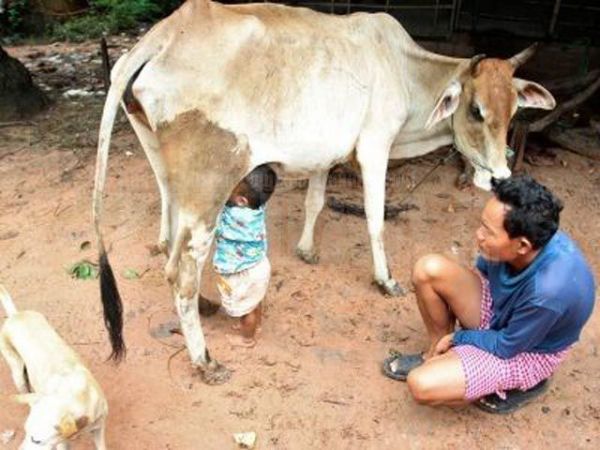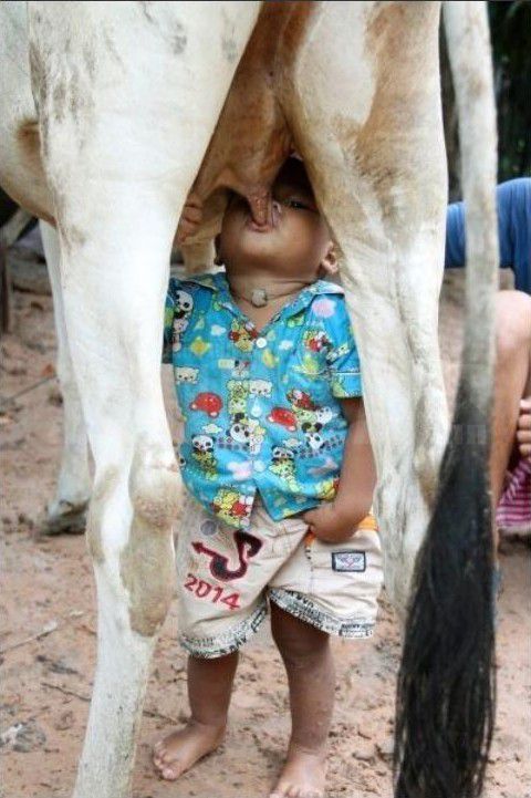 Энэ жаал хүү ээжийнхээ биш үнээний сүүнд дуртай. Тиймээс хүссэн үедээ үнээ хөхдөг. Үнээ нь ч үүнд нь дассан бөгөөд "томоотой" байж байгаад л хөхүүлдэг.