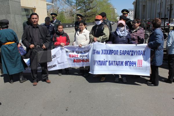 Яг одоо Төрийн ордоны баруун болон зүүн хаалган дээр ХЗХ-ны хохирогчид жагсаж байна. Өнөөдөр өглөө эхэлсэн тэдний жагсаал төрийн эрх баригчид “тоох” хүртэл үргэлжлэх гэнэ. Тэд төрийн гурван өндөрлөг эсвэл хууль санаачлагч нартай уулзахыг хүссэн бөгөөд хохиролоо барагдуулахыг хүсэж байгаагаа хэлж байлаа. Өнгөрсөн долоон жилийн хугацаанд жагсагчдын хохирлын тал хувийг барагдуулсан бөгөөд ХЗХ-ны битүүмжилсэн хөрөнгө дутсан нь сандралд оруулжээ.