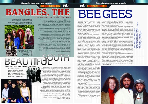 Дэлхийн рок-поп хөгжмийн талбарт тасралтгүй 40 жил нэр алдраа цуурайтуулсаар байгаа энэхүү домогт хамтлаг үе үеийн шилдэг хит дуугаа зөвхөн өөрсдөө бүтээдэг гэдгээрээ алдартай. Англиас Австралид цагаачлан очсон цагаачдын хүүхдүүд болох Барри болон ихэр ах дүү Робин, Моррис нар анхныхаа хамтлагийг Бисбейн хотод The Gibbs гэсэн нэртэй байгуулж байв. Тэдний Австрали дахь уран бүтээл төдий л амжилтанд хүрч чадахгүй байсан учраас 1967 онд ах дүү гурав Англид иржээ. Ингээд менежер Роберт Стигвудын зөвлөгөөгөөр Винс Милуни, Колин Питерсон хоёрыг хамтлагтаа урьснаар трио нь квинтет болов. Ингэж хүч нэмэгдсэний дараа менежер Р. Стигвуд Английн дуу бичлэгийн Polydor, Америкийн Atlantic фирмтэй хамтран ажиллах гэрээ байгуулж Их Британи дахь анхны “New York Mining Disaster 1941” синглиэ гаргасан байна. Энэ синглээс Bee Gees-ийн стиль тодорхой болсон бөгөөд уянгалаг болон хүчтэй хоолойг хослуулсан хөгжмийн гайхалтай аранжировк тэдний таних тэмдэг болсон юм. Уг сингль Америк, Английн хит-парадын Топ-20-д багтсан бол дебют-цомог нь Топ-10-д багтжээ. Анхны амжилтын сенсааци намжаагүй байхад “The Love Somebody”, “Holyday”, “Words”, “I Started A Joke”, “Massachuеssets” /1976/, “I’ve Gotta Get A Messeges To You” /1968/ зэрэг баллад Европын хүчтэйд тооцогдох хит-парадыг тэргүүлэх боллоо. 1968 оны эцсээр гитарчин В.Милуни хамтлагаа орхиод хэдхэн долоо хонож байтал Р.Жибб нөгөө хоёртойгоо санал зөрөлдснөөр бие даасан уран бүтээлийн замаа хөөхөөр шийдсэн байна. Түүний 1969 онд хийсэн “Saved By The Bell” соло-сингл Их Британид тэр үеийн хамгийн алдартай бүтээлийн нэг болоод байхад Барри, Моррис хоёр бөмбөрчин К.Питерсоныг хамтлагаас хөөн дуэт болоод байлаа. Гэсэн ч асар богино хугацаанд “Don’t Forget To Remember Me” дуугаараа Робины амжилтыг эвдэж чадсан юм. 1969 оны сүүлээр үүнээс ч хачирхалтай юм болсон нь Барри Жибб хамтлагаа орхих гэсэн явдал байв. Энэ эгзэгтэй үед хамтлагийн менежер Роберт Стигвуд Барриг хамтлагт нь үлдээгээд зогссонгүй Робиныг хүртэл эргүүлэн авчирсанаас хойш тэд дахин салаагүй ч бие даасан уран бүтээл нь гарсаар байжээ. Үүнтэй зэрэгцэн 1971 онд бүтээсэн “Lonely Days”, “How Can You Mend A Broken Heart” сингль Америкт сая хувиар борлогдон “платин” болсон байлаа. 1970-аад оны дунд үеэр менежер Р.Стигвуд өөрийн дуу бичлэгийн RSO фирмдээ тэдний шинэ цомгийг бичихээс ямарч шалтгаангүйгээр татгалзав. Иймд ах дүү Жиббүүд Ариф Мардинийг шинэ продюсерээ болгон удалгүй стилиэ соул руу чиглүүлэх болжээ. Энэхүү шийдвэртээ тэд өнөөг хүртэл сэтгэл хангалуун байдаг тухайгаа нэг биш удаа мэдэгдэж байсан. 1970-аад оны хоёрдугаар хагас гэхэд Bee Gees диско-соул стилиэр тоглож эхэлсэн бөгөөд энэ нь ч тэдэнд 1977 онд Р.Стигвудын найруулж гол дүрд нь Жон Траволта тоглосон “Saturday Night Fever” киноны бүх саундтрэкийг хийх боломжийг олгожээ. Уг киноны дуунуудаас бүрдсэн цомгийн борлуулалтын амжилтыг өнөөдрийг хүртэл хэн ч эвдэж чадаагүй байгаа юм. 1983 онд “Амьд үлдэх хэрэгтэй” киноны хөгжмийг хийгээд өөрсдийн бие даасан бүтээлээс гадна Барбара Стрейзанд, Кенни Рожерс, Дайонн Уорвик, Дайанна Росс нартай хэсэг хугацаанд хамтран ажилласан билээ. Иймэрхүү хэлбэрээр тасралтгүй олон жил хөгжмийн карьертаа анхаарлаа хандуулж байсан ах дүү гурав 1987 оныг хүртэл хувийн амьдралаа төвхнүүлэх зорилгоор уран бүтээлээ хэсэг завсарлаад “You Wing Again” гэсэн хүчтэй синглиэр “Их Британийн хөгжмийн түүхэнд оруулсан 20 жилийн хувь нэмэр” гэдэг онцгой шагналтай тайзнаа эргэн ирс
