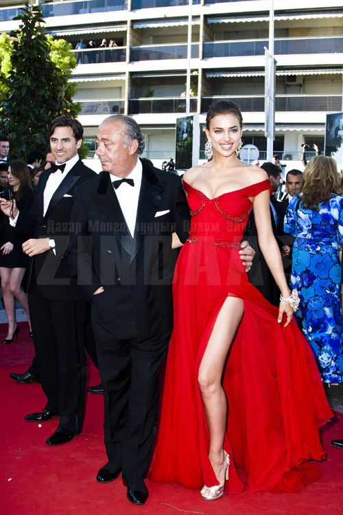 Оросын зартай модель улаан хивсний ёслолд Брэд Питтийн хамт оролцжээ. Ирина ШЕЙК бол загварын Олимпын аваргуудын нэг билээ. Тэрээр Каннын кино фестивалийн улаан хивсэнд Европын хамгийн баян эрийн нэг Фаваз ГРУОЗИТОЙ хөтлөлцөн гарч ирсэн байна. Фаваз нь de Grisogono хэмээх үнэт эдлэлий дэлгүүрийн эзэн билээ. Супермодель бүсгүй ч энэ удаад дагуулж яваа эрийнхээ үнэт эдлэлээс сурталчлах зорилготой ирсэн гэнэ. Харин Шейкийн хувьд нөхөр Криштиану Роналдугаа гэртээ үлдээсэн аж. Криштиану ч Евро-2012 гээд тун ч завгүй байгаа гэжээ.