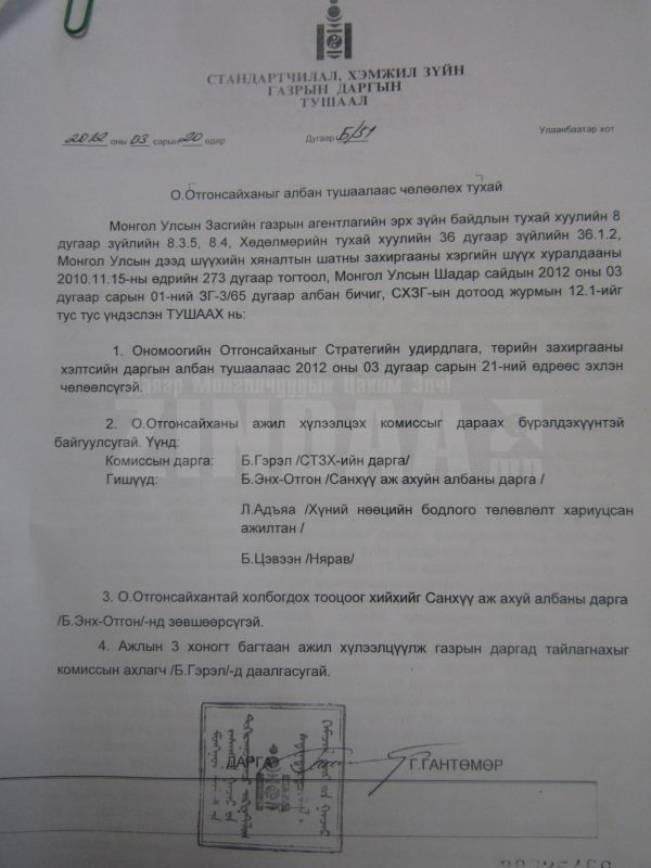 Өнөөдөр “Монгол ньюс” мэдээллийн төвд Стандартчилал хэмжил зүйн газрын дарга Г.Гантөмөр, Стратегийн удирдлага төрийн захиргааны хэлтсийн дарга П.Тунгалаг болон холбогдох албаны хүмүүс өнгөрсөн пүрэв гаригт 13 хүнийг үндэслэлгүйгээр ажлаас халсан гэх мэдээлэлд няцаалт хийлээ.