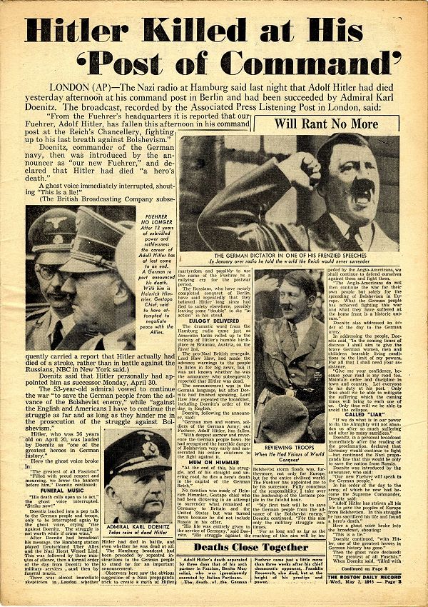 - Геббельс хэвлэл болон радиогоор фюрерийг Берлинд одоо болтол байгаа хэмээн мэдээлэв.