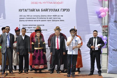 “Дорнод нутаг“ клубын үүсгэн байгуулагч С.Отгонбаатар УИХ-ын 2012 оны сонгуульд Иргэний Зориг Ногоон Намаас Дорнод аймагт нэр дэвшиж байгаа тухай бид өмнө нь мэдээлсэн билээ. Тэгвэл өчигдөр нэр дэвшигч С.Отгонбаатар нэр дэвшигчийн үнэмлэхээ аймгийн Сонгуулийн хорооноос гардан авч албан ёсоор сонгуулийн сурталчилгааны нээлтээ Дорнод аймгийн Тусгаар Тогтнолын талбайд хийлээ. Эзэд нь нутгаа мэдье уриатайгаар сонгуульд оролцож байгаа нэр дэвшигч нээлтийн үеэр Дорнод аймгийн 14 сумын иргэдийн төлөөлөгчидтэй худлаа амлалтаар хуурахгүй, хууль журам зөрчихгүй, гүтгэлэг доромжлол явуулахгүй, өнгө мөнгөөр өрсөлдөхгүй хэмээн гэрээ байгуулж, газар дээр нь нотариатаар баталгаажуулсан нь сонгогч дэмжигчдийн талархлыг хүлээж байсан юм. Өмнө нь ямар ч нэр дэвшигч ингэж ард түмэнтэйгээ гэрээ байгуулж байгаагүй аж. Нээлтэд С.Отгонбаатарыг дэмжихээр Улаанбаатар хотоос Дорнодын уугуул СТА жүжигчин Амбий буюу Ц.Батхуяг, Захиалагт инээд хамтлагын жүжигчин СТА Ө.Мөнх-Эрдэнэ, Х.Манлай баатар, Гитарчин Өөжгий буюу Д.Өлзий-Орших, Улсын начин М.Чимэддорж хүрэлцэн ирсэн байв. Нутагтаа хийсэн бүтээсэн зүйлтэй, хийж чаддагаа харуулсан С.Отгонбаатар энэ удаагийн сонгуульд шударгаар өрсөлдөхөөр нутгийн олондоо амласнаар ийнхүү түүний сонгуулийн ажил эхэлсэн юм.