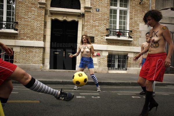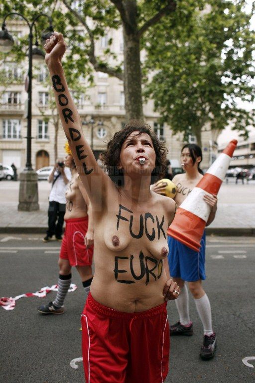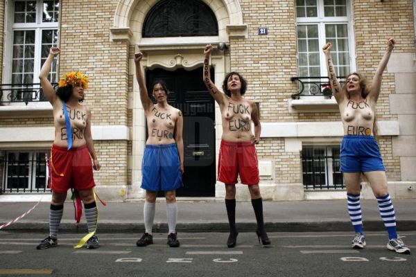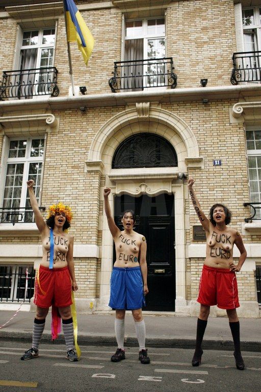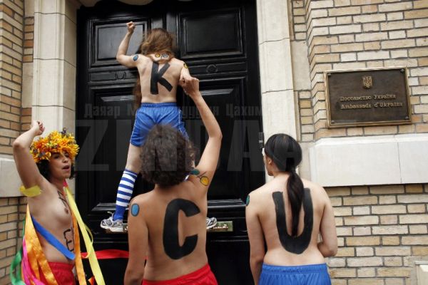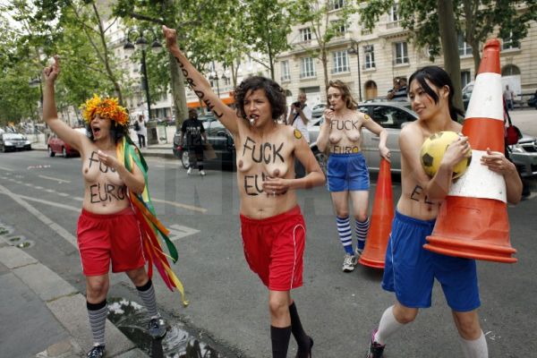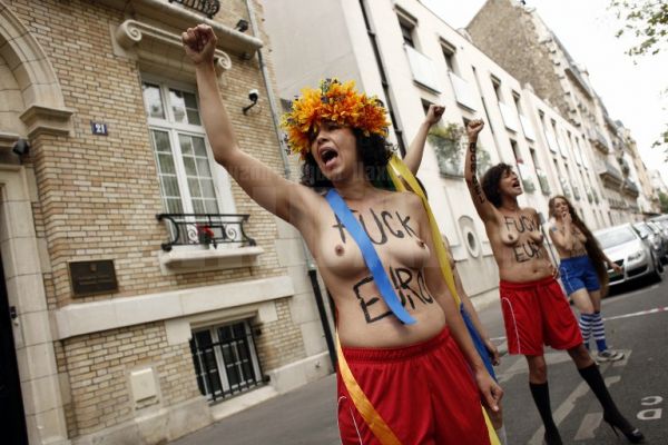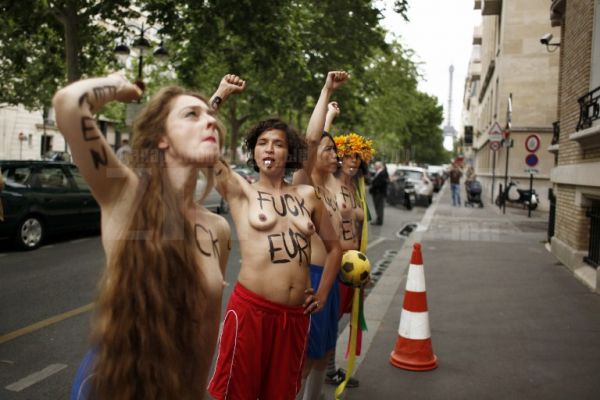 Энэ хөдөлгөөний гишүүд Киев хотын төвд орших хөлбөмбөгийн Европын аварга шалгаруулах наадмын билэг тэмдэгийн өмнө том хэмжээтэй эрхтэний дүрслэлийг байршуулжээ. Түүний дээр “F…K” гэсэн бичгийг ч үлдээсэн байна. Тэд үүгээрээ өөрийн орныг нь зорин урсах секс-аялал зуулчлалыг эсэргүүцэж байгаа аж. Өдгөө аль хэдийн Украинийг зорих биеэ үнэлэгчдийн өргөн цуваа эхэлсэн гэж тэд үзэж байна. Үүгээрээ сексийн хямд үйлчилгээ ихээр бий болж улмаар охид бүсгүйчүүд, залууст аюул занал нүүрлэх, цаашлаад улс орных нь нүүр царай, нэр хүндэд ч муугаар нөлөөлнө гэжээ. FEMEN-ий арт группын үйлдэл цаашдаа ч тэмцээний үеэр үргэлжлэнэ гэдгийг тэд мэдэгдээд байгаа юм.